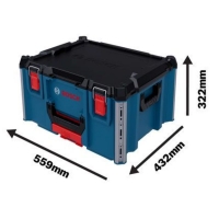 Bosch L-BOXX Contractor 322 được thiết kế theo hệ mô-đun linh hoạt, cho phép liên kết chắc chắn với các thùng L-BOXX khác, giúp mở rộng không gian lưu trữ và tối ưu việc sắp xếp dụng cụ. Không gian bên trong rộng rãi, phù hợp cất giữ đa dạng dụng cụ cầm tay, phụ kiện và thiết bị kỹ thuật. Với trọng lượng khoảng 5 kg cùng tay cầm chắc chắn, hộp hỗ trợ di chuyển thuận tiện trong quá trình làm việc. Đồng thời, kết cấu bền bỉ giúp L-BOXX Contractor 322 chịu tải bên trong lên đến 50 kg, đảm bảo an toàn khi mang theo nhiều dụng cụ mà vẫn giữ được form hộp ổn định, không biến dạng.